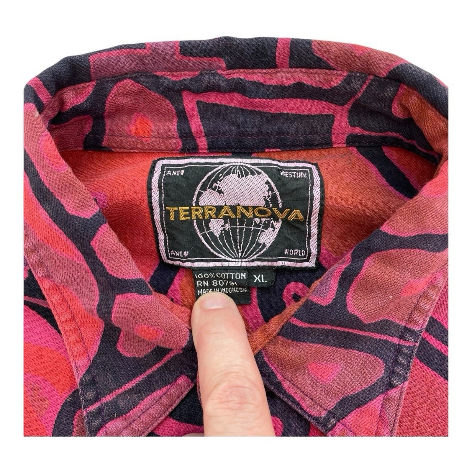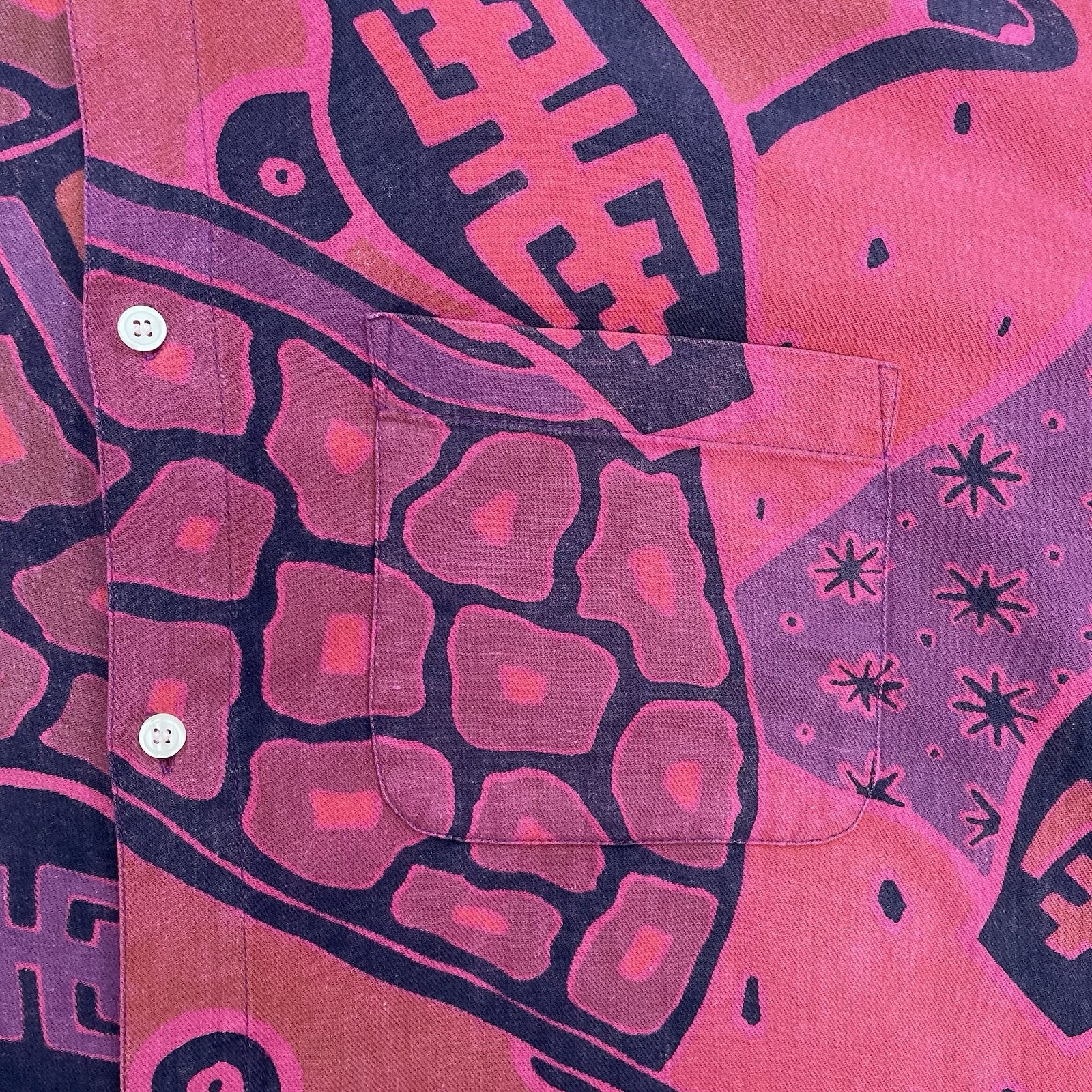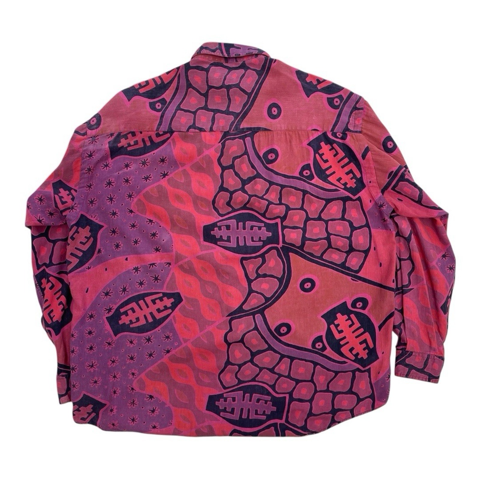 90’s Bohemian Streetwear Tribal Print Long Sleeve Red Purple Black Shirt by Terranova.